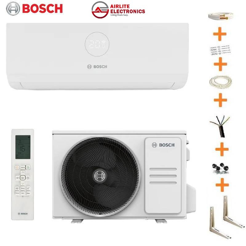 The Bosch Highwall Split Type Air Conditioner CLL5000i is designed to deliver powerful cooling with exceptional energy efficiency. Featuring advanced DC inverter technology, it ensures up to 75% energy savings, earning an impressive A++ energy class rating. Eco-friendly and built to last, this unit comes with a 5-year warranty and an anti-corrosion unit for durability. Enjoy superior air quality with its bio filters, active carbon filter, ionizer, and air purification mode, which remove odors, small particles, and allergens. Comfort is tailored to your needs with turbo mode, dehumidification mode, and super-silent operation. For convenience, the system also includes a self-service mode and comes with two free services within the first year. With SEER 7 and SCOP 5.1 energy-saving performance, the Bosch CLL5000i offers reliable cooling, cleaner air, and long-term efficiency—making it a smart choice for any home or office.