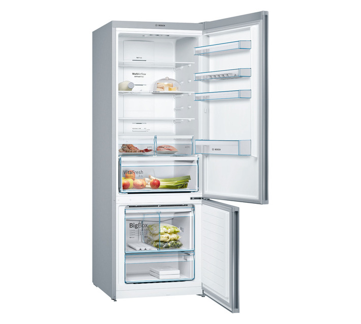 The Bosch KGN56LB3N5 Series 6 Bottom Mount Freezer Fridge offers a perfect blend of style, capacity, and advanced cooling technology. With a generous 505L total capacity, including a spacious 105L freezer, it’s ideal for families needing flexible storage. The Full No Frost system and Multi Airflow technology ensure consistent cooling and eliminate ice build-up, while the Fast Cooling function quickly chills newly stored items. Featuring VitaFresh humidity-controlled drawers, your fruits and vegetables stay fresher for longer. The VarioZone design allows flexible use of freezer shelves and drawers, while the Big Box compartment is perfect for bulk or oversized frozen items. Finished in sleek black with a digital LCD display, LED lighting, and a reversible door, this fridge combines modern elegance with everyday practicality.